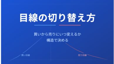 「まだ上がると思っていたのに急落した」「どこで売り目線に変えればよかったか分からない」——目線の切り替えは構造で判断できます。買いから売りへの切り替え基準を解説します。