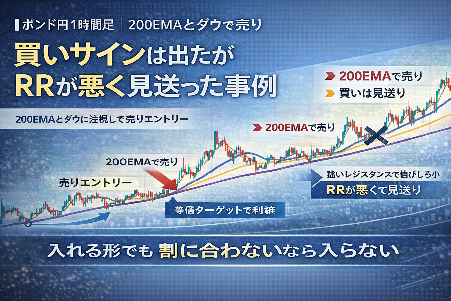 このシリーズでは、単に“勝った負けた”ではなく、環境(200EMA)×構造(ダウ)×位置(レジサポ)×期待値(RR)で、エントリー可否を決めることを重視します。
