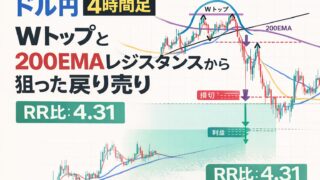 今回は「最初の買いは伸びずに微益決済 → その後の売りでRR比15」という流れになりました。