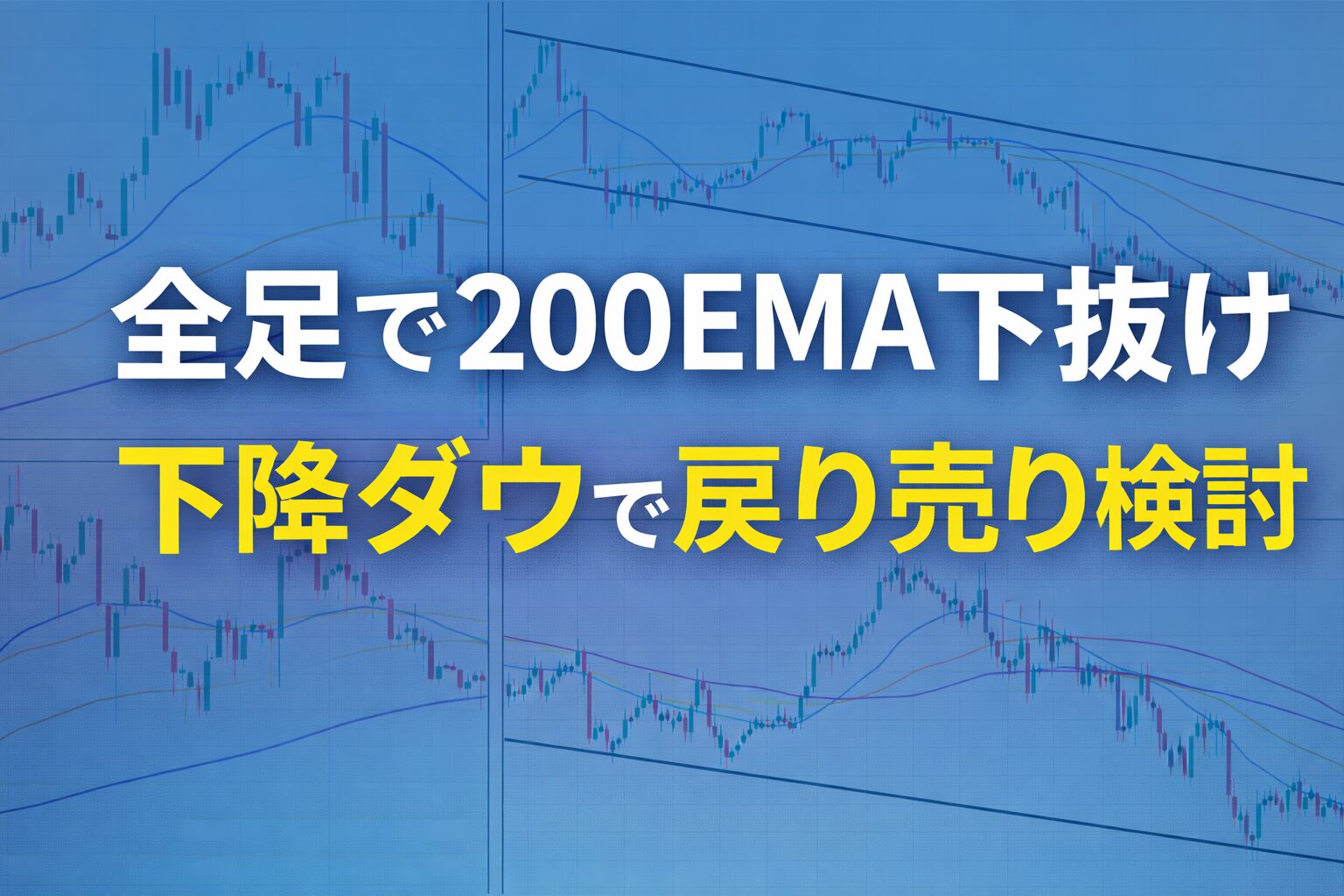 すべての足で200EMAを下抜け、下降ダウが形成されています。