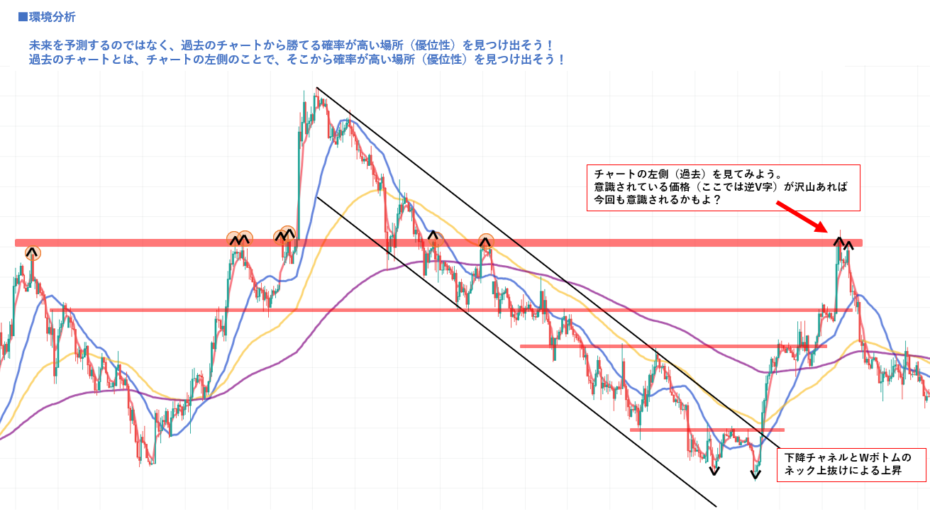 未来を予測するのではなく、過去のチャート(左側)から優位性を探す。