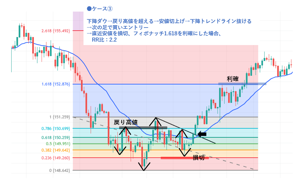 ● ケース②:強いトレンド → ダウ継続ならRR比は2.5〜3.0へ