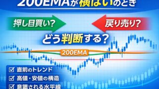 200EMAがチャネルの中心(センター)になっているように見える局面では、200EMA/チャネルセンターがレジサポとして機能しやすくなります。