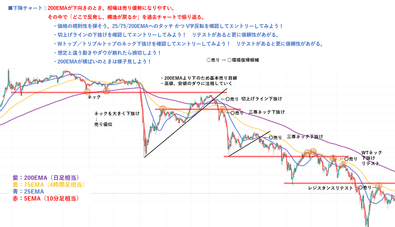 200EMA下向きの環境で起きやすい構造を振り返る(下降チャートの復習)