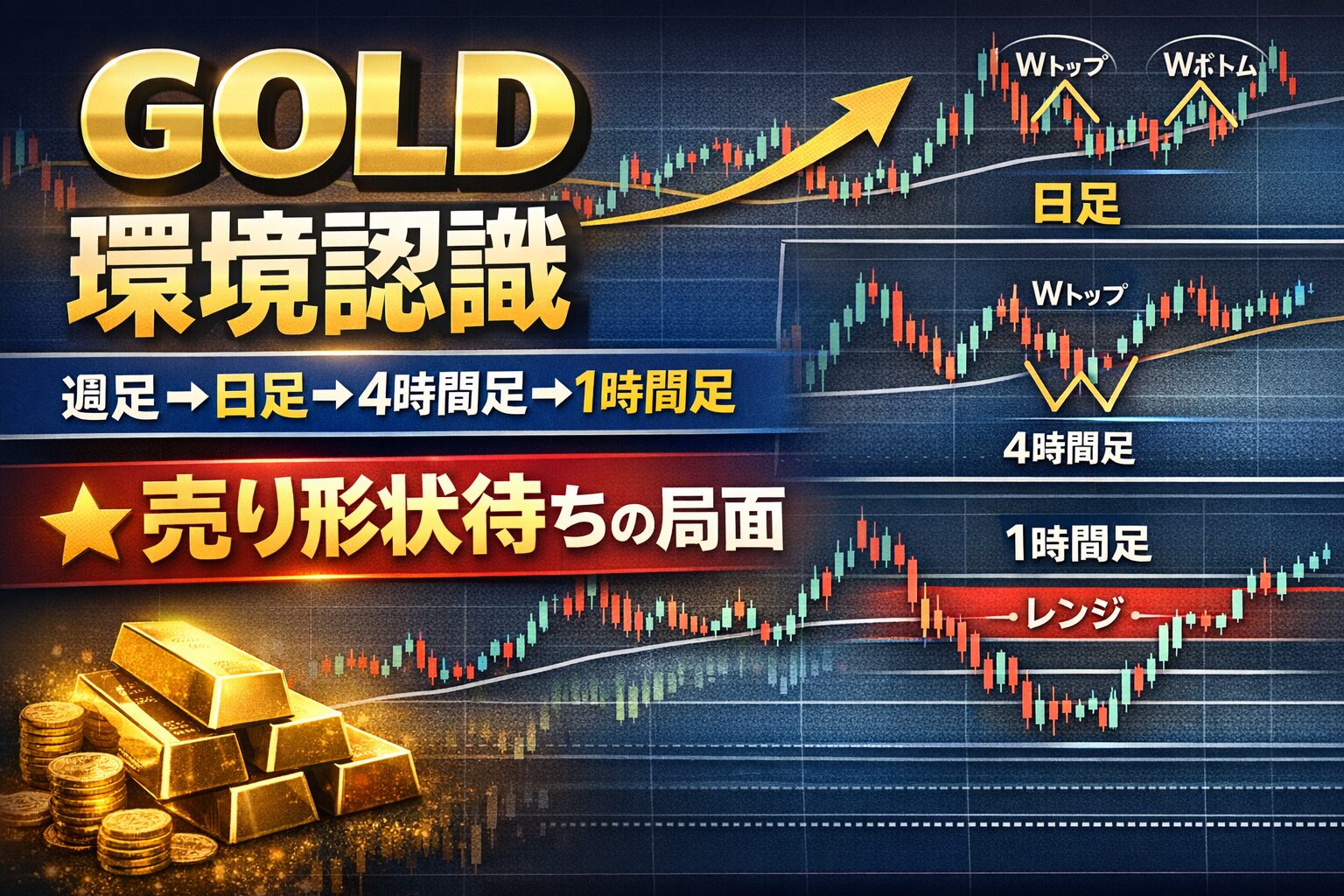 GOLD環境認識│週足→日足→4時間足→1時間足のマルチタイム分析│売り形状待ちの局面