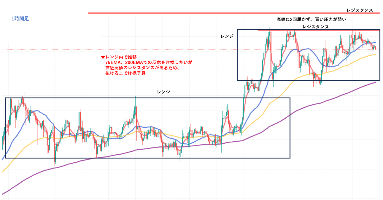 • 1時間足:レンジ構造で判断待ち