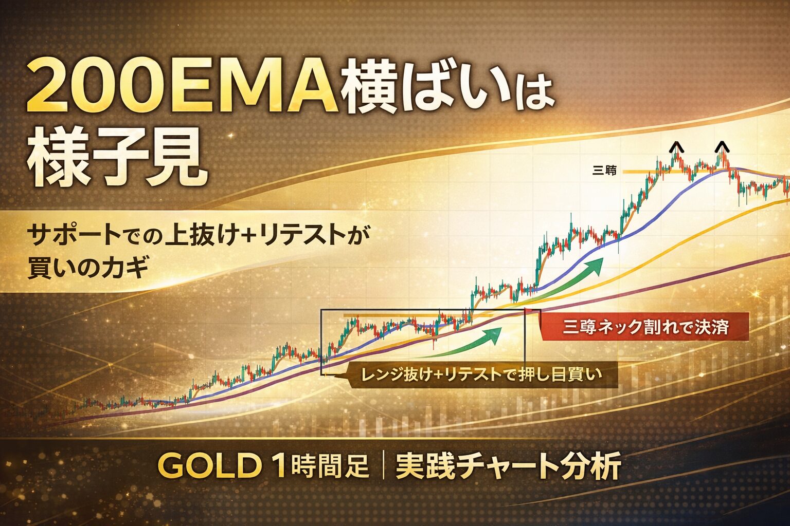 GOLD 1時間足|200EMA横ばいは見送り|レンジ抜け&リテストで勝つ具体条件
