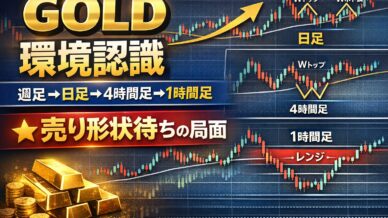 GOLD環境認識│週足→日足→4時間足→1時間足のマルチタイム分析│売り形状待ちの局面