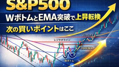 S&P500│Wボトムと200EMA突破で上昇転換。次の買いポイントはここ