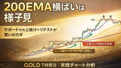 GOLD 1時間足|200EMA横ばいは見送り|レンジ抜け&リテストで勝つ具体条件