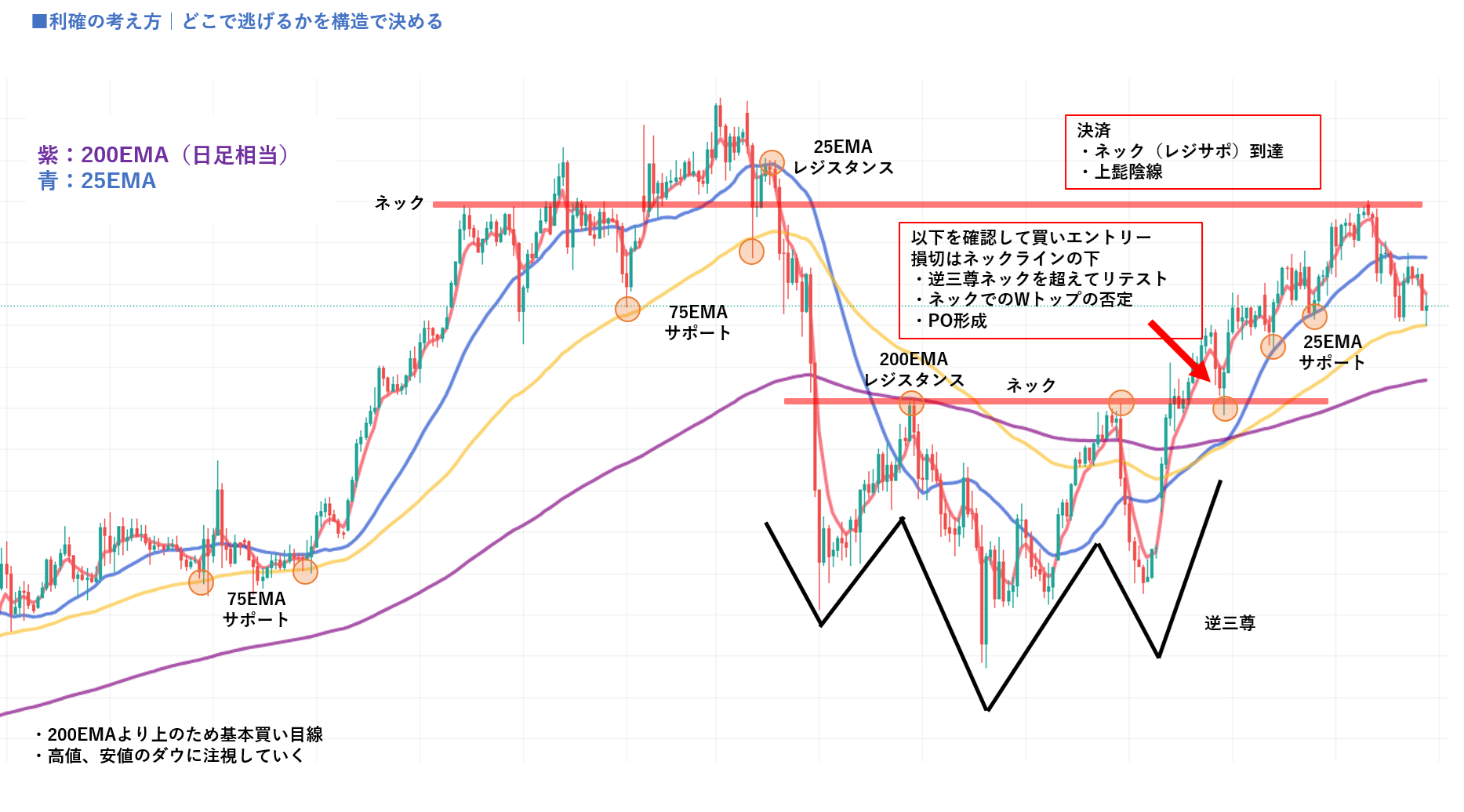 - 200EMAや25EMAが上に控えている場面