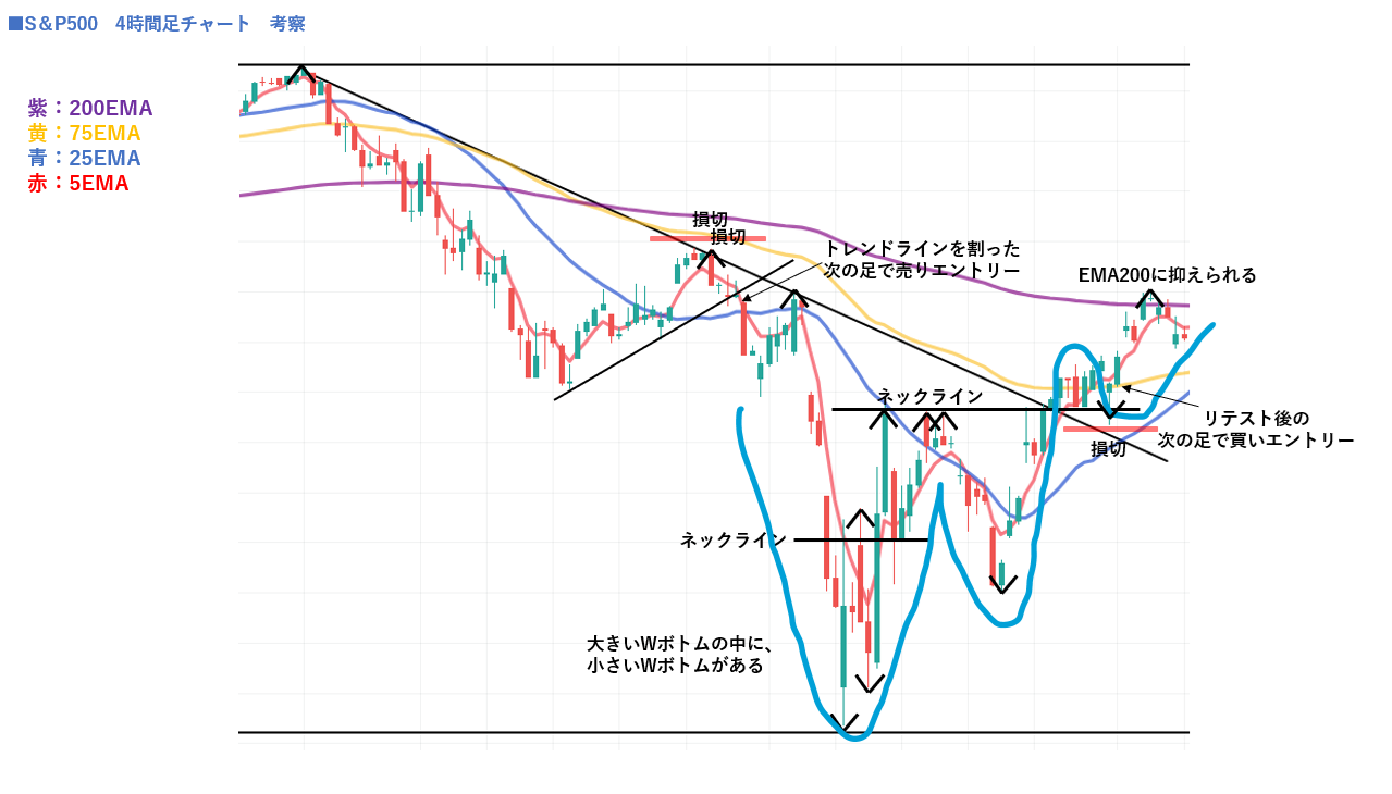 S&PP500「関税ショック」から学ぶ:週足→日足→4時間足で見る押し目・戻り・トレンド転換